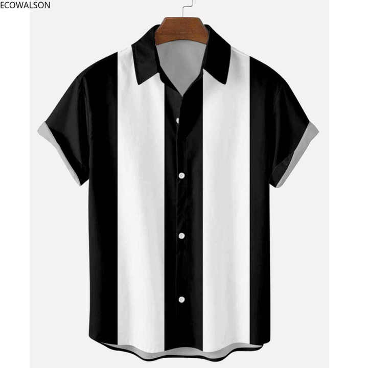 Men's Summer 1950s Vertical Striped Printed Button Down Short Sleeve Vintage Christmas Bowling Shirt Simply From The Store