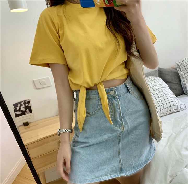 Shimaer Crewneck Tops for Women Best Sale Women's Clothing High Waist Short-Sleeved Tee