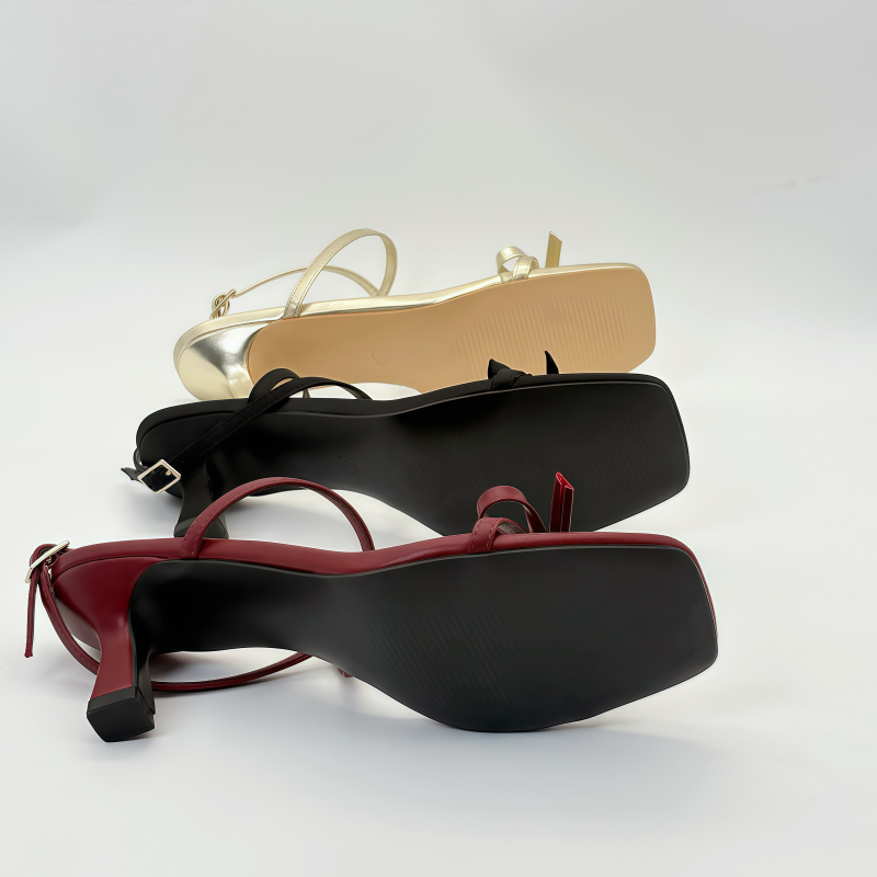 صندل نسائي صيفي جديد بعقدة متقاطعة وحزام واحد وحزام للكاحل ورأس مربع مفتوح من الأمام وكعب عالٍ رفيع