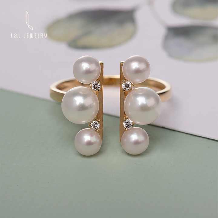 New Fashion 18K Gold Seawater Pearl Ring Akoya Pearl Ring Real Diamond Ring for Women Girls Custom Jewelry