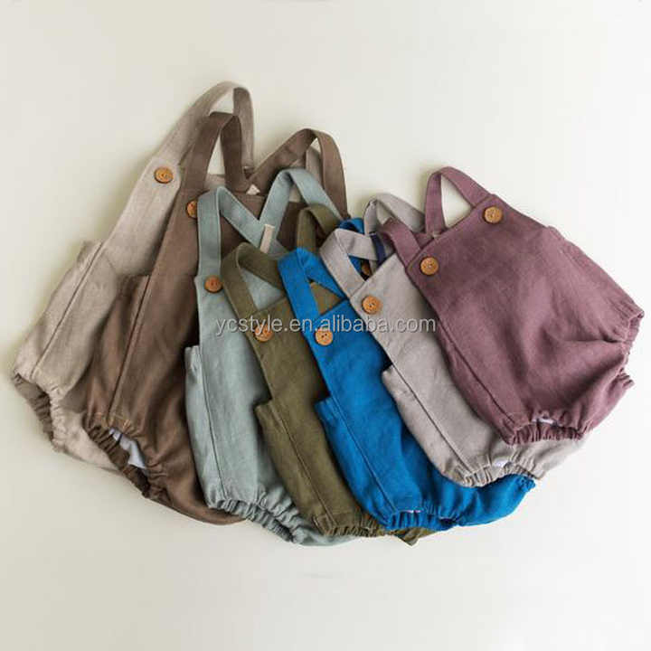 Hot Sale Infant Toddler Baby Girl Clothes One Pieces Suspender Unisex Baby Summer Linen Clothes Kids Clothing Manufacturers