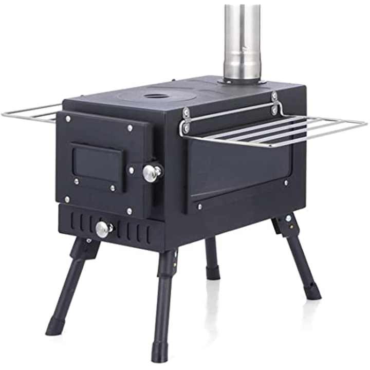 Multifunctional Portable Outdoor Camping Stove Cast Iron Wood Burning Stove with Large Stainless Steel Firebox