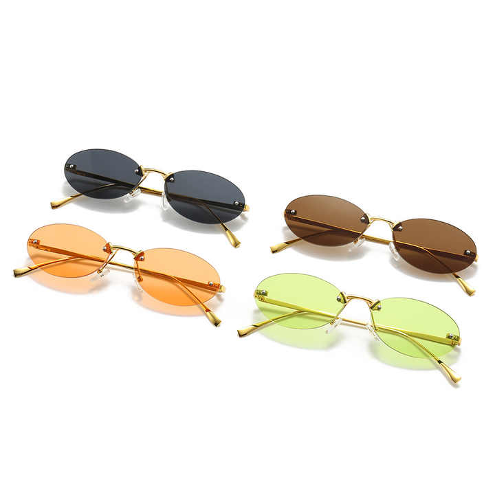 High Quality Wholesale Rimless Driving Sunglasses Classic Round Retro Design Small Frame Metal Laser Logo Black Sun Glasses