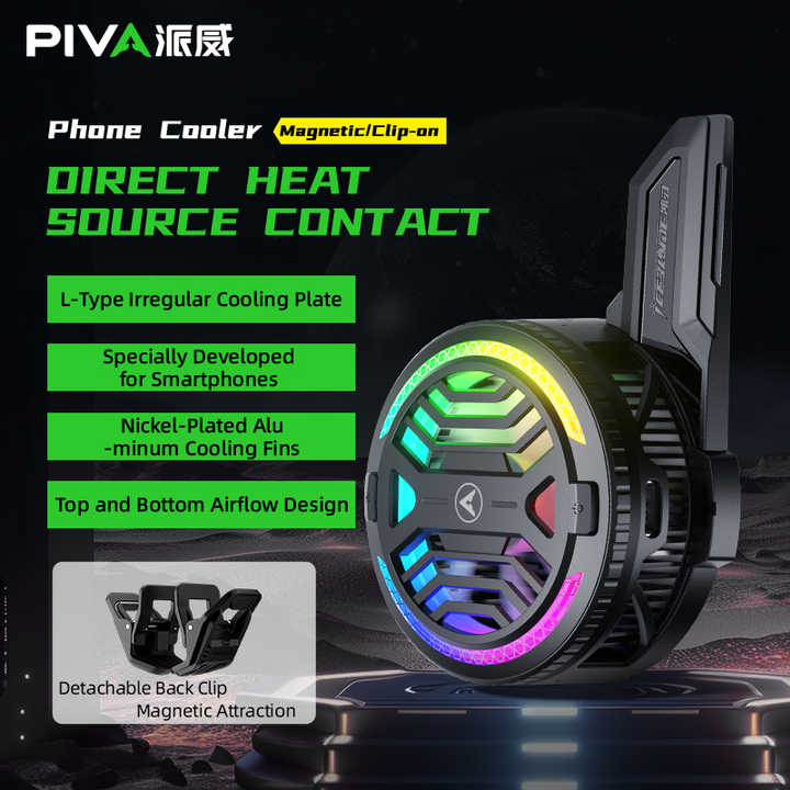 PIVA 20W Cooling Fan with Magnetic Ring Clip for Mobile Phones Backlight Gaming PUBG, Portable Handheld Cooler