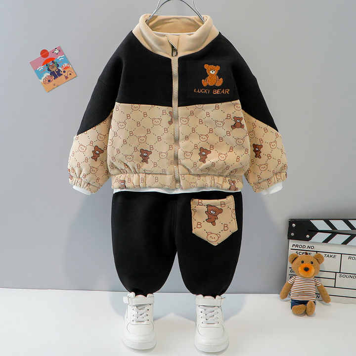New Arrival Boys Autumn Winter 2 Piece Set Thick Warm Kids Suit Plus Velvet Summer Children's Clothing
