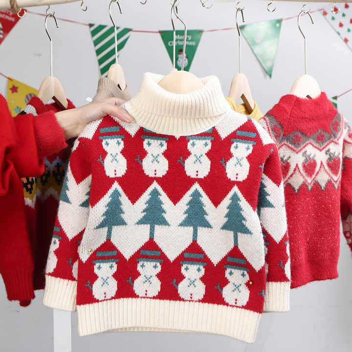 Newborn Winter Turtleneck Cartoon Knitted Sweater for Baby Girls Christmas