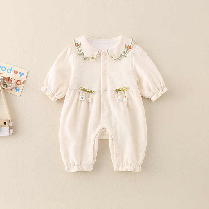 Baby Girl Autumn Romper Set, Newborn Princess Style Jumpsuit with Cute Details for Autumn Outdoor Activities 0-36 Months