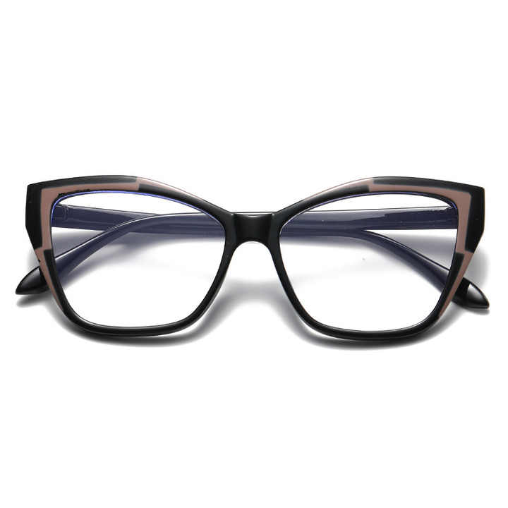 Fashion Cat Eye Women's Color Contrast Stitching Glasses Frame Geometry Personality Color Changing Anti Blue Light Glasses 2024
