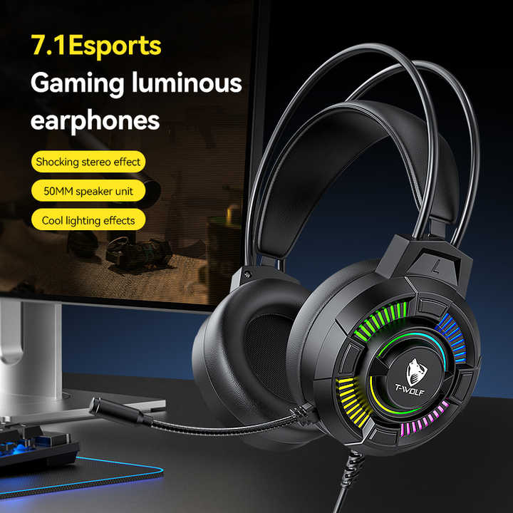 Wired Earphones with LED Light Red Green Blue 7.1 USB 3.5mm Wired Earphones Earbuds Gaming Headphones Headsets for PC Laptop