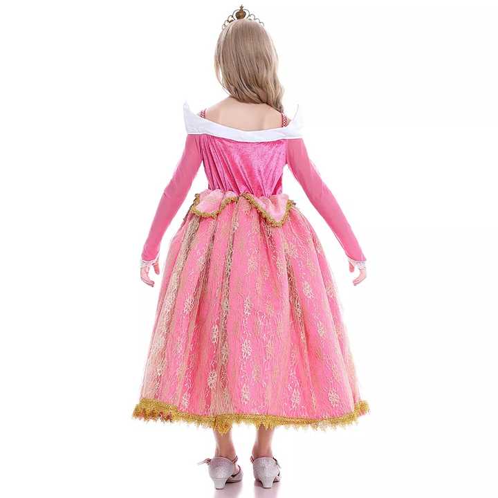 MQATZ Girls' Long Sleeve Princess Aurora Costume Dress, Sleeping Beauty Princess Dress for Birthday Party