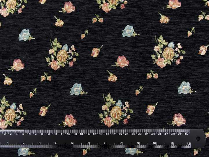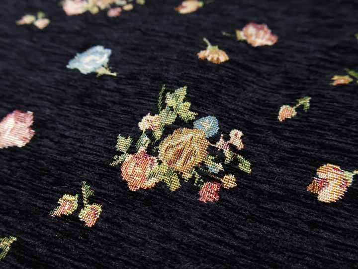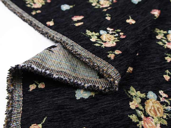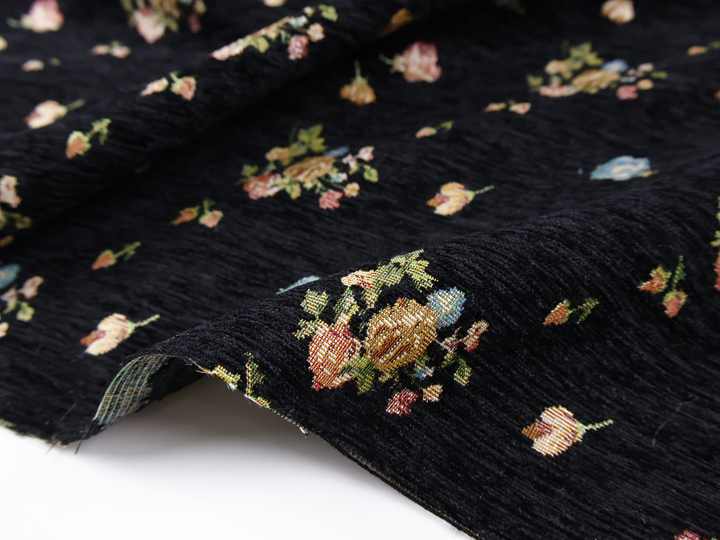 Thickened skin friendly drape black woven gold wire retro flower chenille jacquard fabric set dress fabric