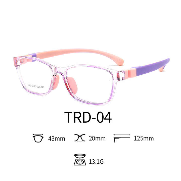 TRD-04 Kids Fashion Flat Mirror Glasses Silicone Frame Anti-Blue Glasses