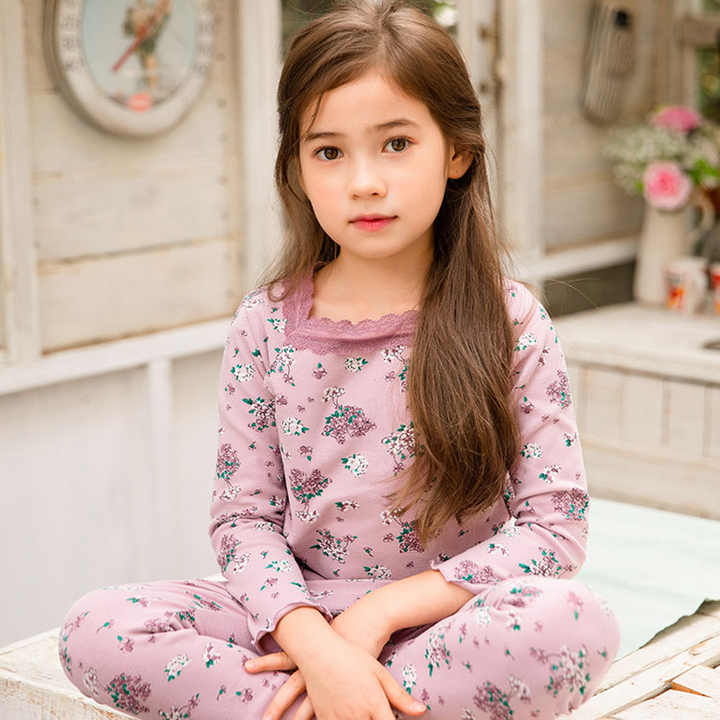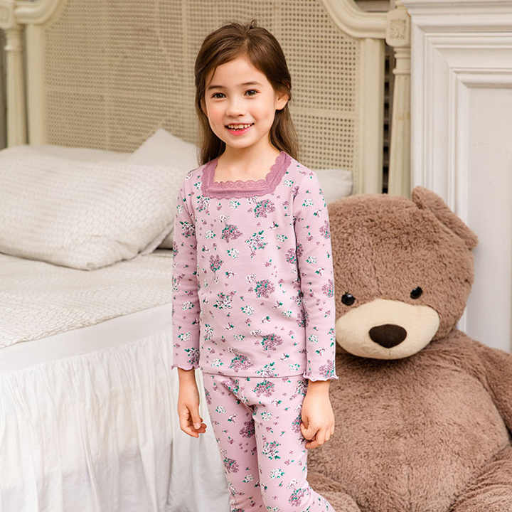 Special Clothing Soft Comfortable Children Floral Print Cotton Kids Pajamas Set