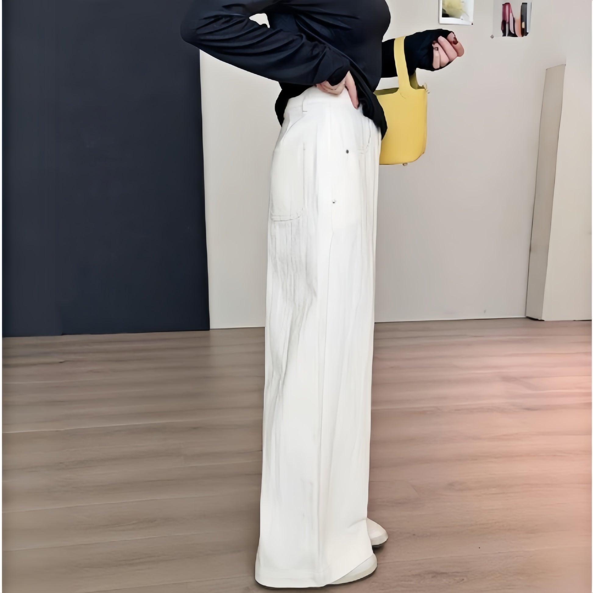 جينز نسائي كوري كاجوال بنطلون جينز بساق واسعة سروال ساق مستقيمة