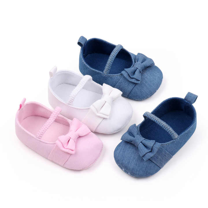 Toddler Girls Solid Denim Flat Princess Style Elastic Strap Mary Jane Shoes with Cute Bowknot , Fashion Design