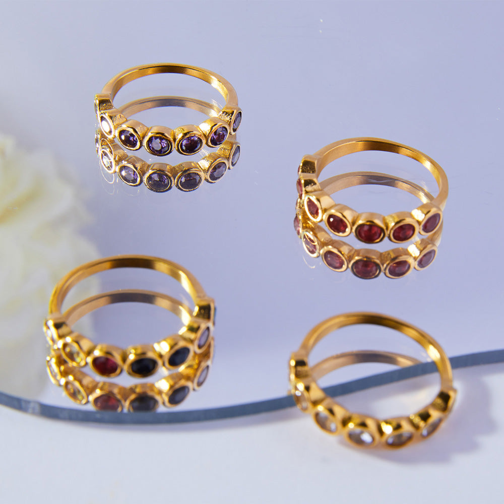 خواتم مطلية بالذهب عيار 18 قيراط عالية الجودة للنساء والرجال مصنوعة من الفولاذ المقاوم للصدأ مع زركون للحفلات والذكرى السنوية - موديل 2025 بالجملة
