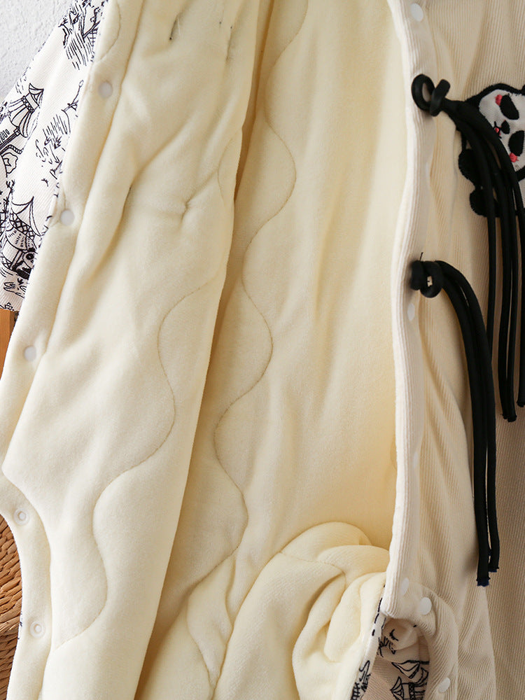 ملابس شتوية دافئة للأطفال حديثي الولادة، بتصميم لطيف على شكل دب الباندا، بنمط صيني، مبطنة من الداخل بطبقة من الصوف، مناسبة للفتيات، مصنوعة من نسيج عالي الجودة (ODM).