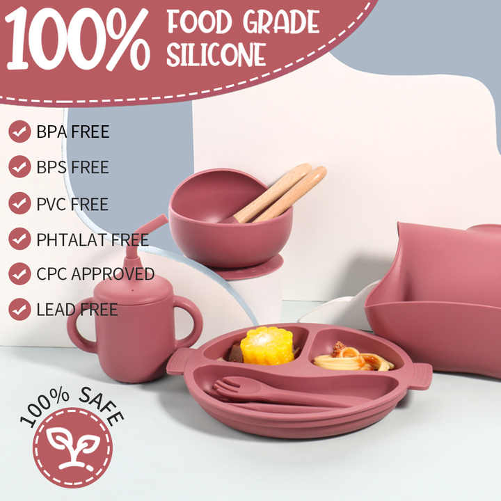 LED Lighted Baby Weaning Supplies, Silicone Baby Feeding Set, Blade Baby Weaning Supplies for Ages 6 Months+