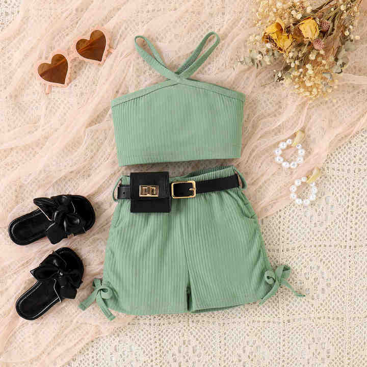 Girls' Clothing - Halter Neck Top + Cotton Shorts + 3-Piece Baby Suit
