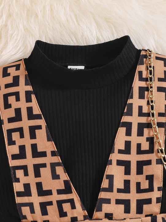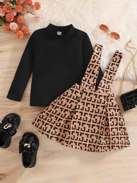 Wei Ying Clothing - Kids' Clothing - Girls' Clothing - Floral Print Back Strap Skirt + Long Sleeve Blouse 2-Piece Suit