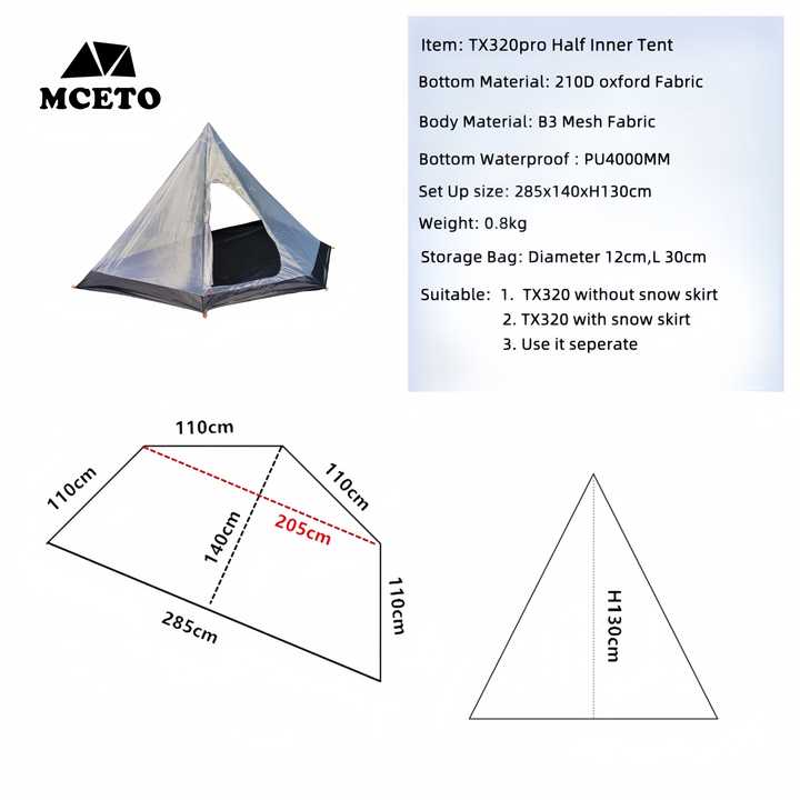 MCETO TX320pro Half Inner Mesh Pyramid Tent with Heated Awning and Outer Mosquito Net for Camping and Backpacking