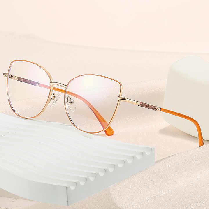 2024 Women's Cat Eye Glasses Classic Stainless Steel Metal Spring Hinges Anti Blue Ray Optical Eyeglasses Frame