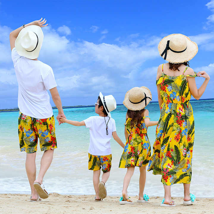 2019 Summer Beach Flower Clothes Mom and Daughter Dresses Cool Family Matching Outfits Set