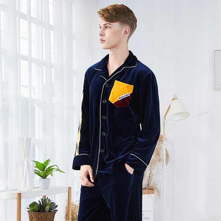 Autumn Winter Solid Pajamas Set Men's Sleepwear Plus Size Warm Sleepwear Suit Casual Homewear