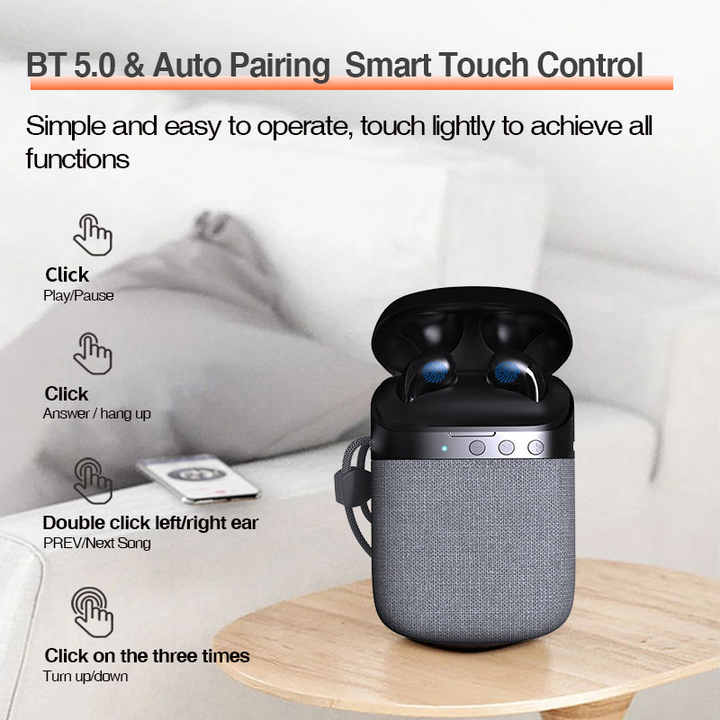 New 2 in 1 FM/TWS/BT/Selfie Stereo Earphone with Wireless Charging Case Blue