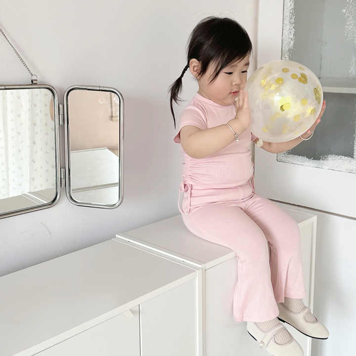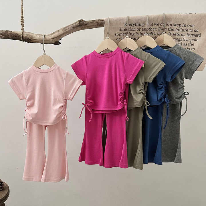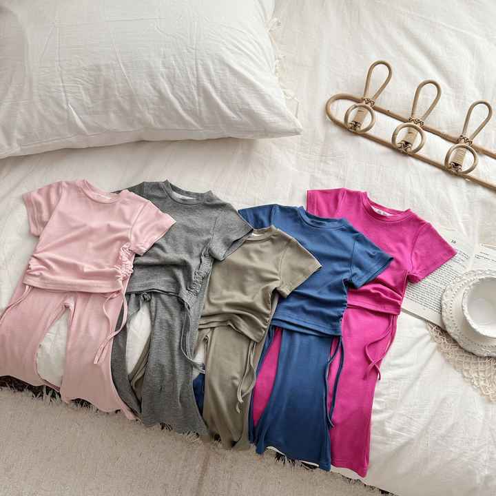 Little Girls Summer Clothes Set Short Sleeve T-shirt Tops+Light-up Pants 2 Piece Outfits M3804