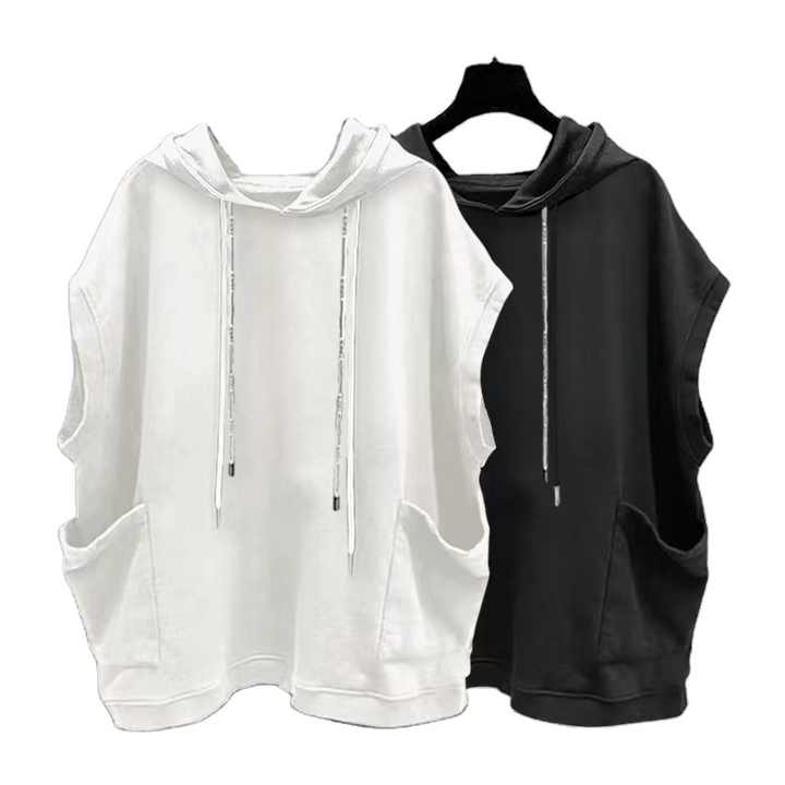 Hip-pop with wide pocket European and American men's large size sleeveless hooded oversized jacket