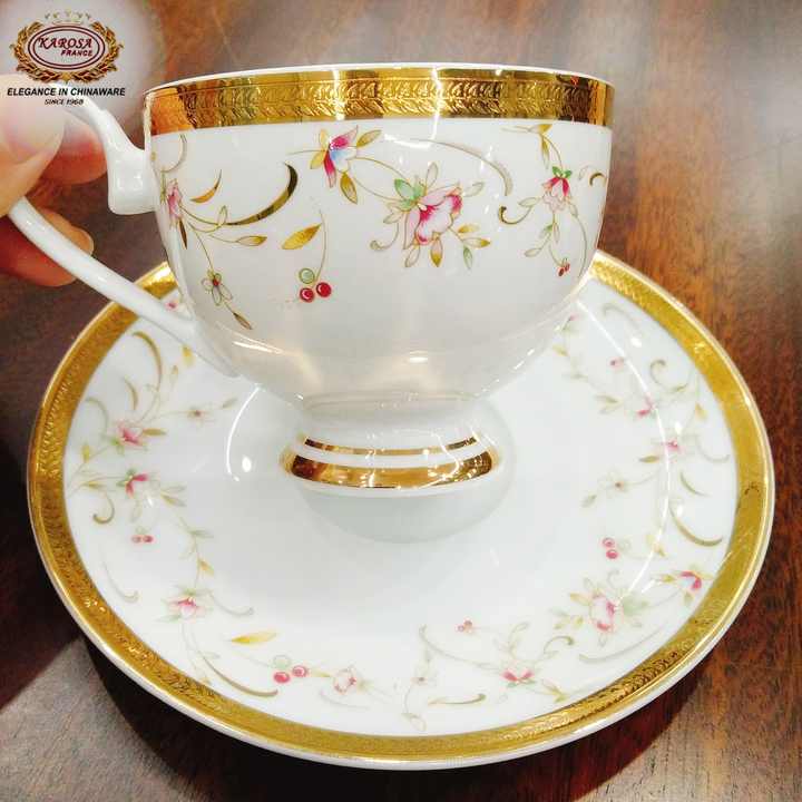 RTS 14 Pcs Ceramic Porcelain Gold Plated Tea Cup and Saucer Set Coffee & Tea Sets