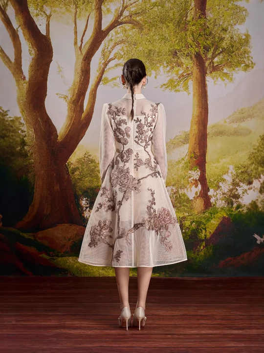 Bettergirl 2025 Spring and Summer New Vietnam Niche Dried Rose Embroidered Mesh Dress