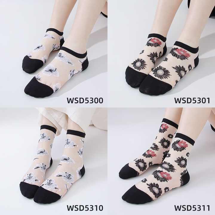 Women's Fashionable Breathable Crystal Silk Mid-Tube Boat Socks Hand-Stitched Cotton for Spring Summer Japanese Glass Silk