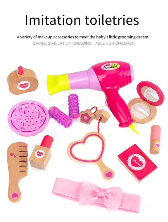 Children's Wooden Princess Pink Dressers Girls Play Dress-up Table Jewelry Box Gifts Wooden Toys